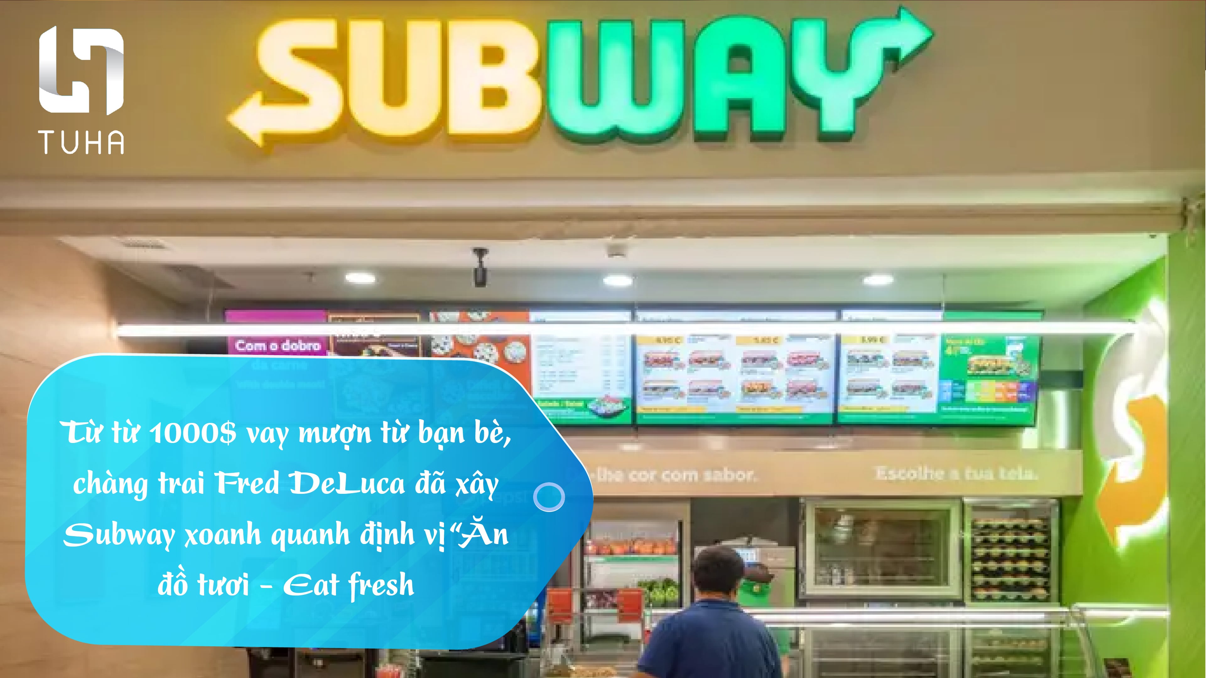 Từ từ 1000$ vay mượn từ bạn bè, chàng trai Fred DeLuca đã xây Subway xoanh quanh định vị “Ăn đồ tươi - Eat fresh”.
