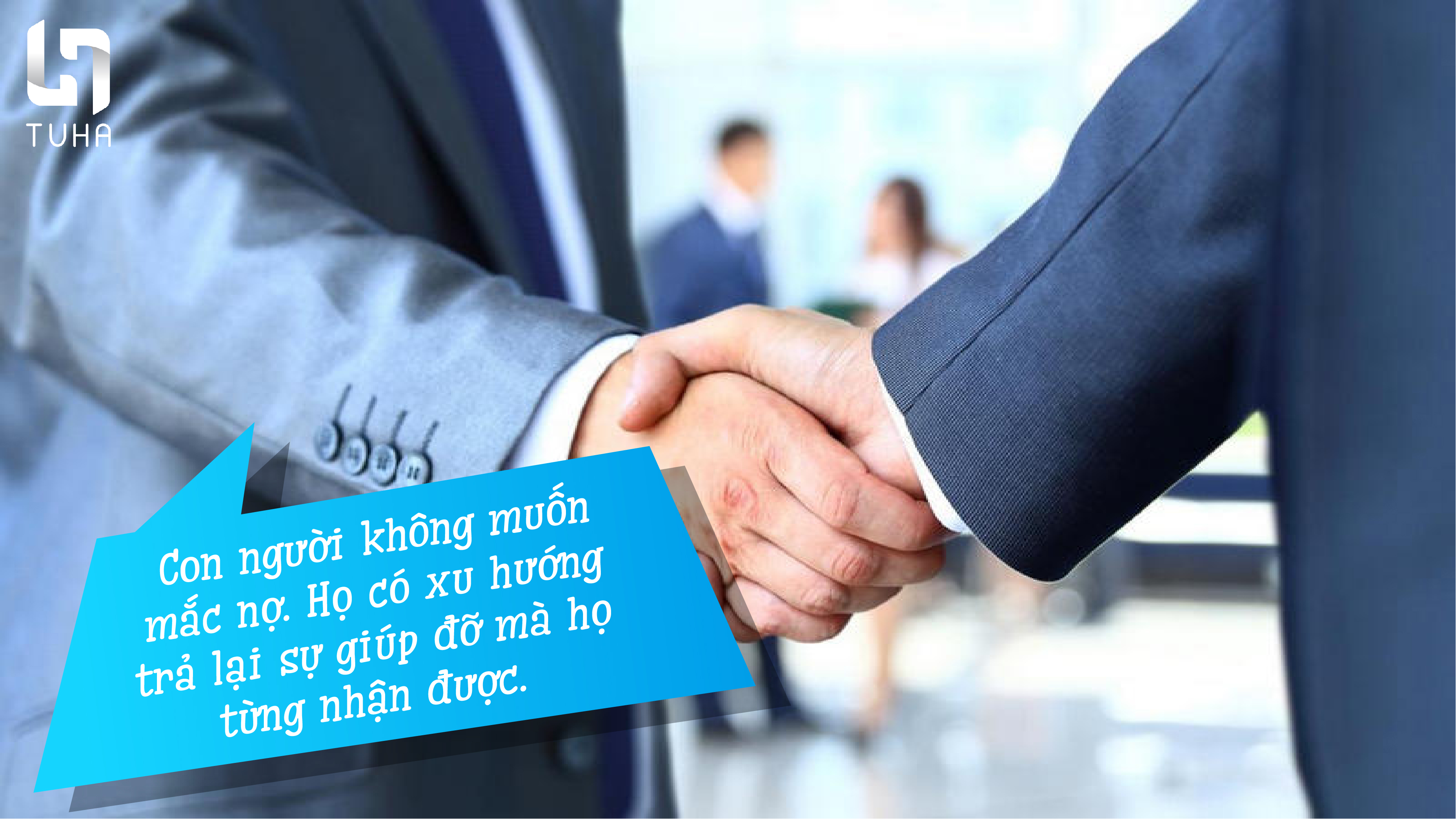 Con người không muốn mắc nợ. Họ có xu hướng trả lại sự giúp đỡ mà họ từng nhận được. Bắt đầu mối quan hệ bằng cách tặng cho khách hàng một món quà nhỏ về chuyên môn sẽ tạo nên sự tin tưởng và khách hàng sẽ có xu hướng hoàn trả khi bạn giới thiệu sản phẩm. Tất nhiên, tâm lý có qua có lại, hãy làm với sự chân thành và tự nhiên nhất.