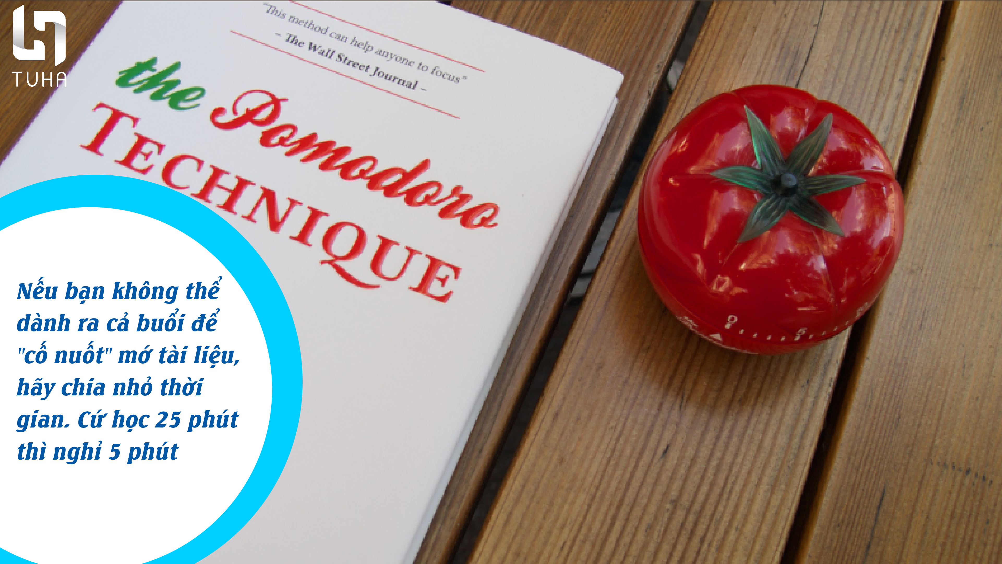 Nếu bạn không thể dành ra cả buổi để "cố nuốt" mớ tài liệu, hãy chia nhỏ thời gian. Cứ học 25 phút thì nghỉ 5 phút.