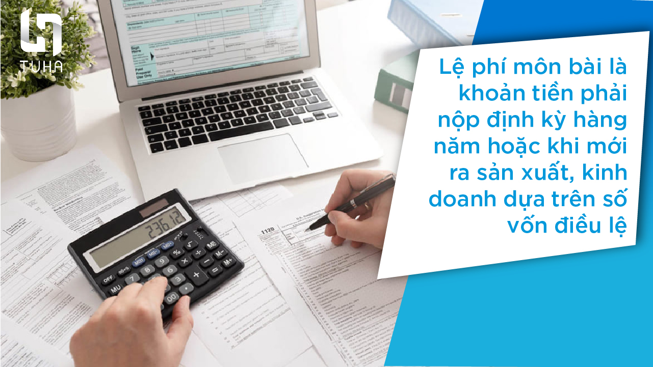 Lệ phí môn bài là khoản tiền phải nộp định kỳ hàng năm hoặc khi mới ra sản xuất, kinh doanh dựa trên số vốn điều lệ ghi trong giấy chứng nhận đăng ký kinh doanh/vốn đầu tư ghi trong giấy chứng nhận đăng ký đầu tư (đối với tổ chức) hoặc doanh thu của năm (đối với hộ, cá nhân kinh doanh).