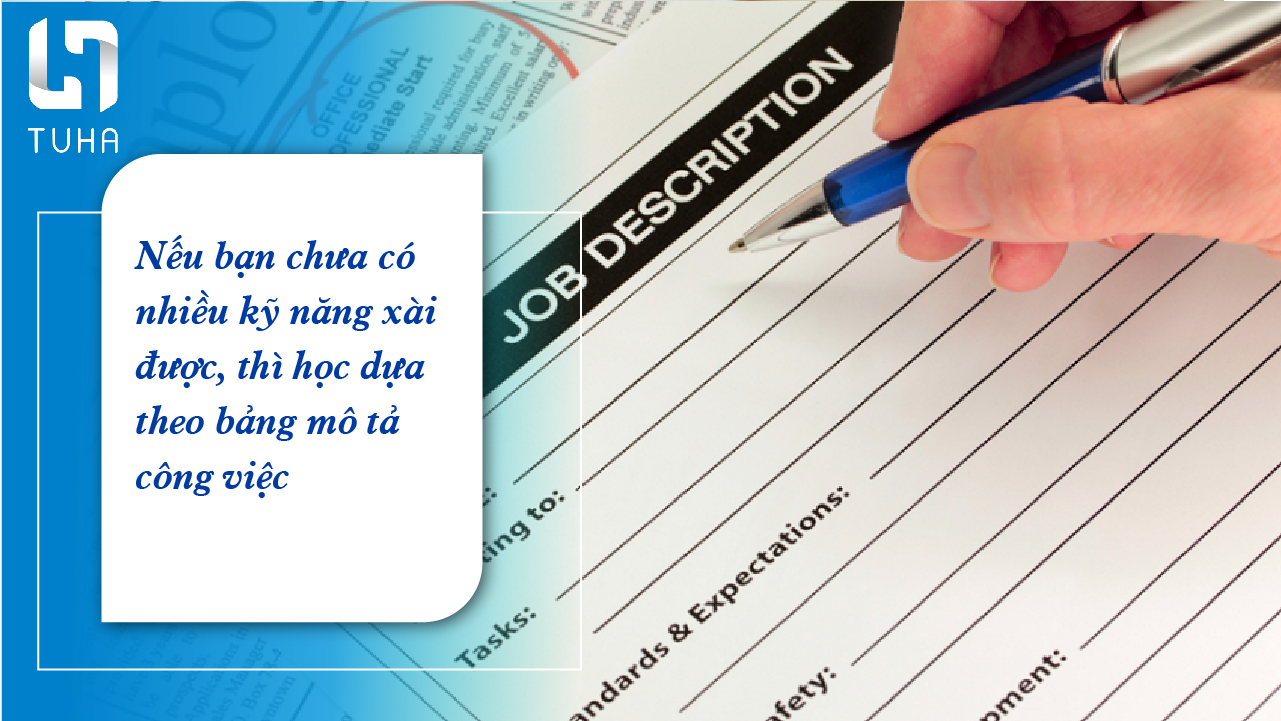 Nếu bạn chưa có nhiều kỹ năng xài được, thì học dựa theo bảng mô tả công việc. Một khi phát triển thêm nhiều kỹ năng, thu nhập của bạn cũng tăng x2, x4.