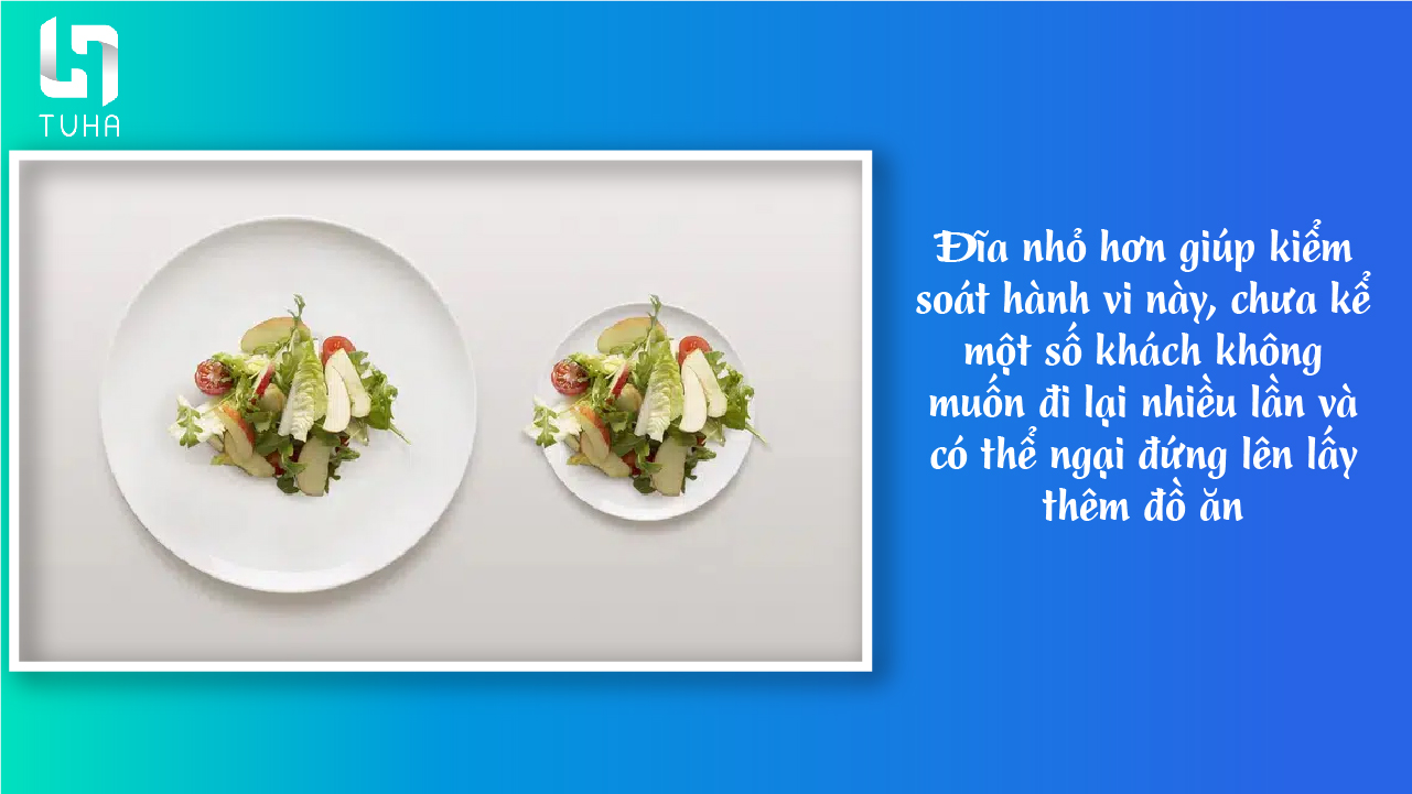 Nếu sử dụng đĩa to, khách sẽ có tâm lý lấy “càng nhiều càng tốt”, dẫn đến việc đồ ăn bị thừa và phải đổ bỏ.
